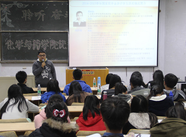 10月31日,化学与药学院于教学区开展主题为“聆听、奋斗、统筹、未来”的优秀学生经验交流会。