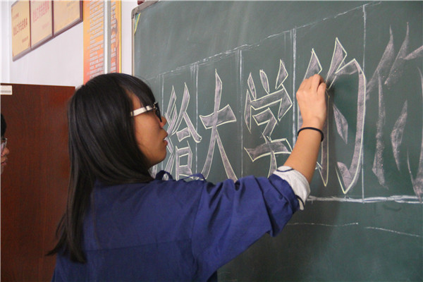 颁奖前,院宣传部干事为活动书写黑板报,为颁奖做好准备。