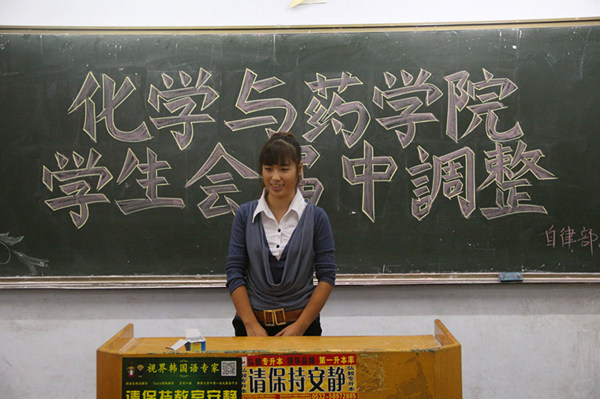 9月17日,化学与药学院2016届学生会届中调整于教学区顺利进行。学院2016届学生会主席王飞及各部部长担任评委,院15级全体学生会成员及部分新生参与。