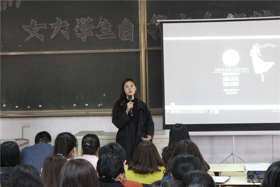3月12日,化学与药学院于教学区举办女性安全知识讲座,春蕾志愿者协会组织部部长张婷婷担任主讲,学院16级全体女生参与。本次讲座由女生部举办。