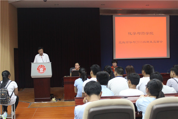 8月29日,化学与药学院2016级新生见面会于信息楼六楼会议室召开。学院党委书记梁安波、院长曲宝涵、学院办公室工作人员、专业学科带头人及部分班主任老师出席见面会,2016级全体新生与会。