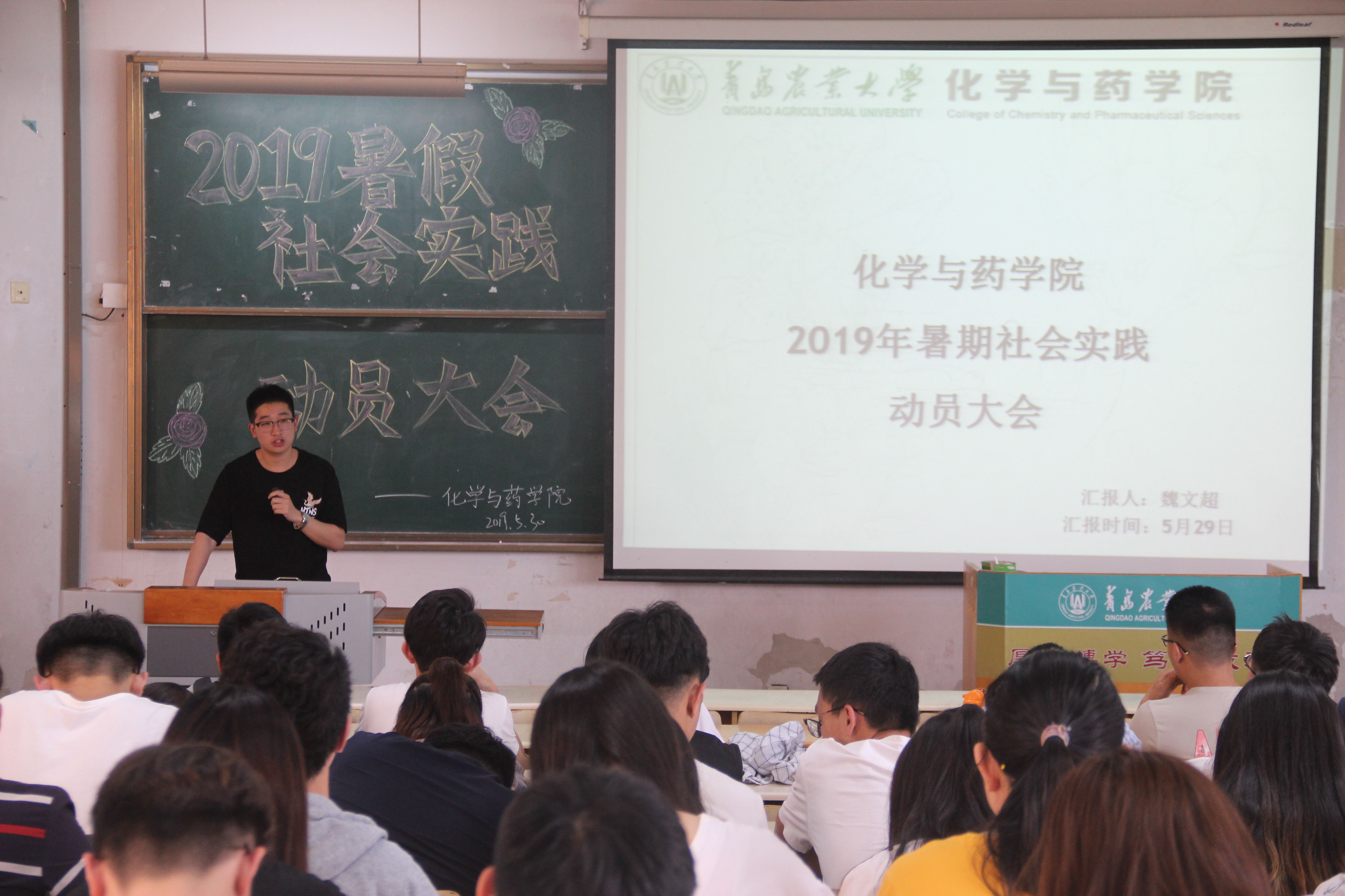 5月30日,青岛农业大学化学与药学院于教学区召开2019年暑期社会实践动员大会。会议由学院团委书记王海霞主持,17、18级学生代表参加。