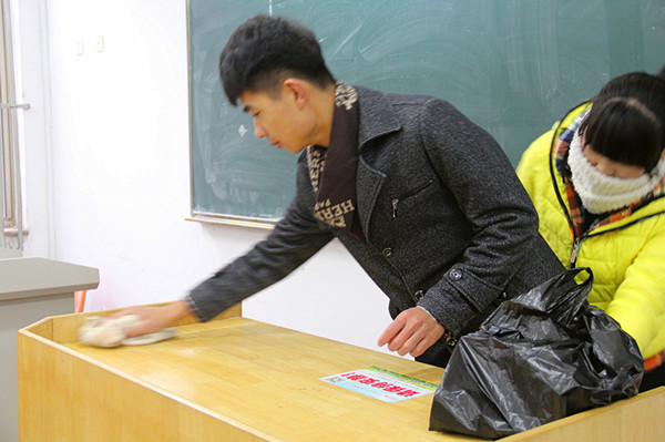 11月28日,化学与药学院心铃协会于教学区举行清扫教室义工活动。