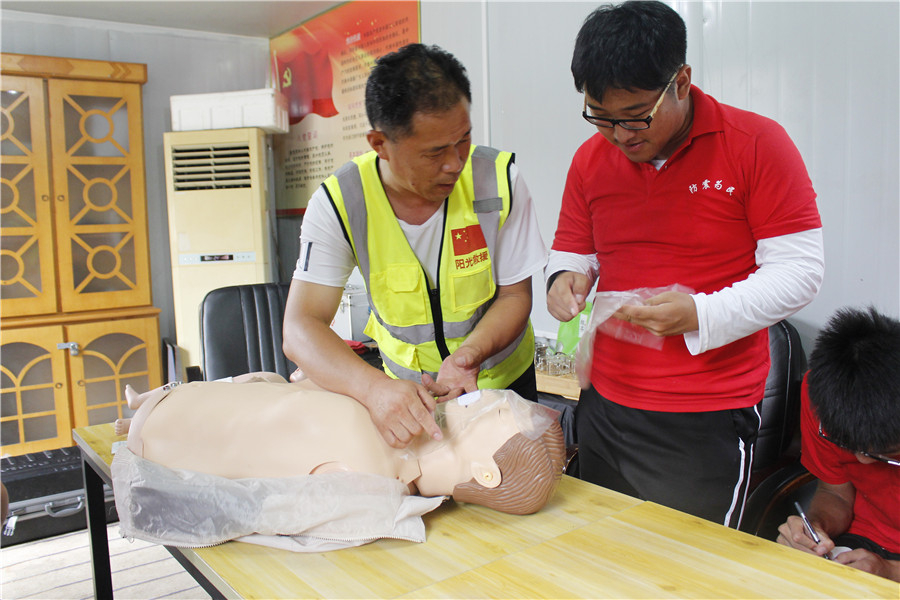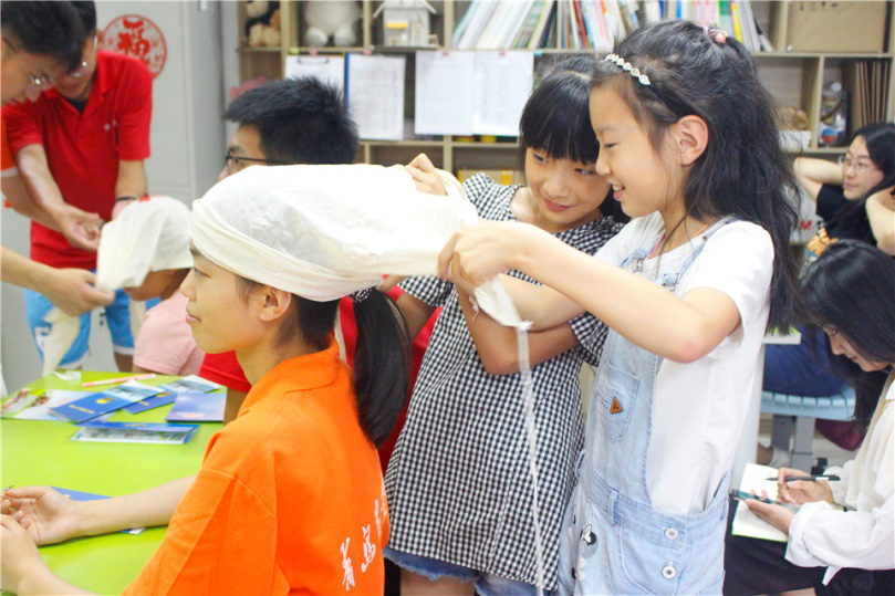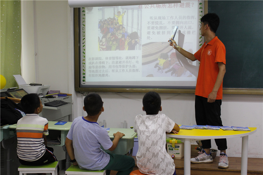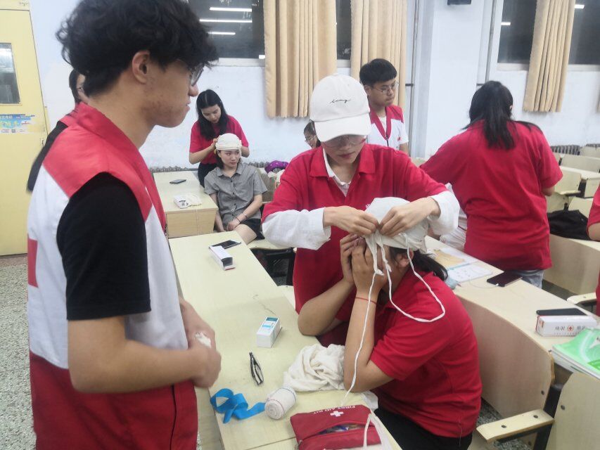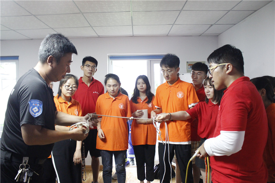 蓝天红十字救援基地创始人为学生队员讲解几种逃生绳结的系法