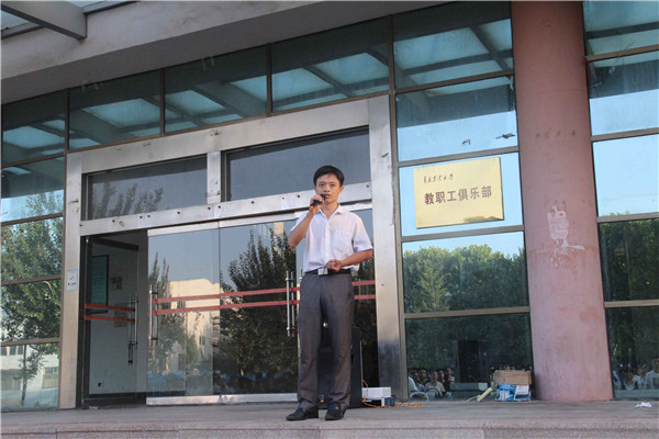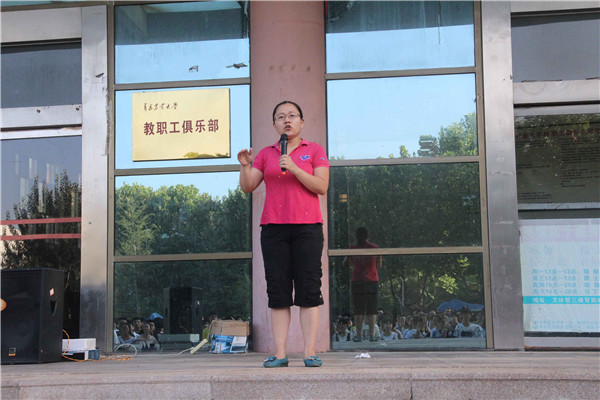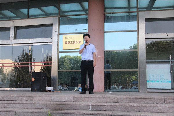 8月22日,化学与药学院于文体馆前举行新学期点操仪式。学院团委书记王海霞、正科级辅导员田保玲、团委副书记杨冬冬、辅导员陈照志出席,14级、15级全体学生到场。