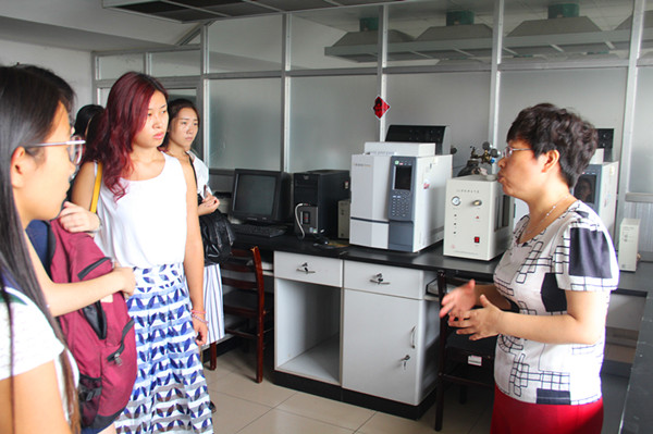 教师宋吉英向新生介绍了气象色谱仪,并要求同学认真学习理论知识。