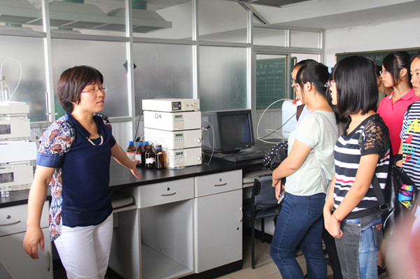 赵艳芳教师介绍了液相色谱仪的作用与简单的操作,他鼓励对科研有兴趣的新生可以来实验室跟老师一块做实验,早点接触化学仪器。