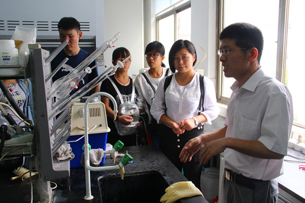 肖建教授对仪器做了简单的演示,他说道:“我们的实验设施不比任何一流大学差,这要感谢学校对我们的大力支持,希望同学能把握机会,认真搞科研。”