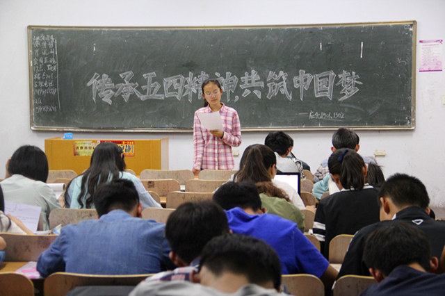 各班级班长团支部书记就五四爱国运动的起因、爆发、过程及其带来的深远影响等方面对此次救亡图存运动进行全面的解读,并向同学们阐述五四运动的内涵和精神,“五四运动是一场反帝反封建的爱国主义运动,它所体现的是爱国积极人士的勇于探索、敢于创新、解放思想和实行变革精神,它所追求的是民主和科学。它不仅仅是学生群体反抗帝国主义与反动军阀的一时热血,更是中华民族自上而下抵抗侵略,争取民族独立的呐喊,身为当代大学生,我们应铭记革命先烈壮烈牺牲的事迹,学习爱国无畏的奉献精神。”制药工程1501班团支书刘静舟讲道。