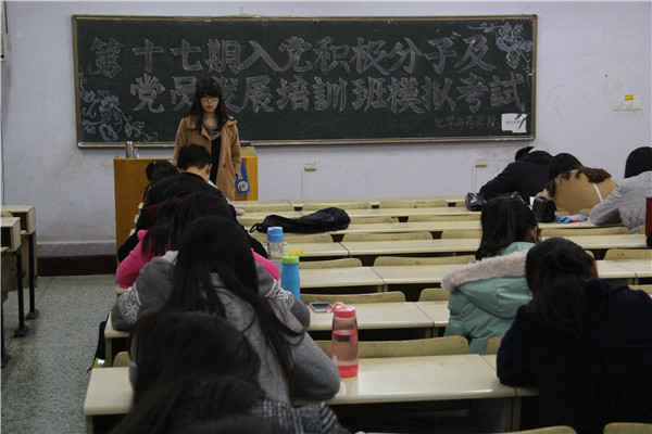 11月10日,化学与药学院于教学区举行第十七期入党积极分子及发展党员第一阶段模拟考试。本次考试是对入党积极分子和党员发展对象第一阶段党章的学习情况进行排查和摸底。督促其提高政治理论水平,为下一阶段的学习打下基础。