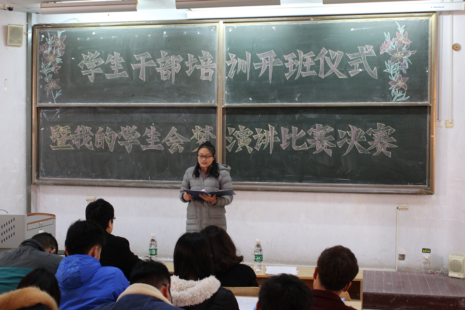 2月25日,化学与药学院在教学区举办学生干部培训开班仪式暨“我的学生会梦”演讲比赛。此次活动由学院学生会主席王飞主持,团委书记王海霞、正科级辅导员田保玲、辅导员陈照志出席,15级、16级班长书记以及学生会全体成员与会。