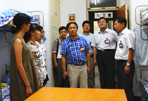 史雪辉检查了新生宿舍环境,并对新生强调说:“新生入学之际,校园内可能会有一些推销人员或者偷盗者悄悄潜入,大家一定不能相信他们,有什么事及时联系班助、老师,或者直接拨打110,一定要注意人身财产安全。”