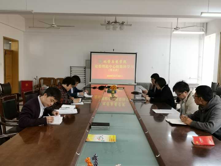 2019年4月30日,化学与药学院党委理论中心组于学院会议室开展本学期第五次集体学习。