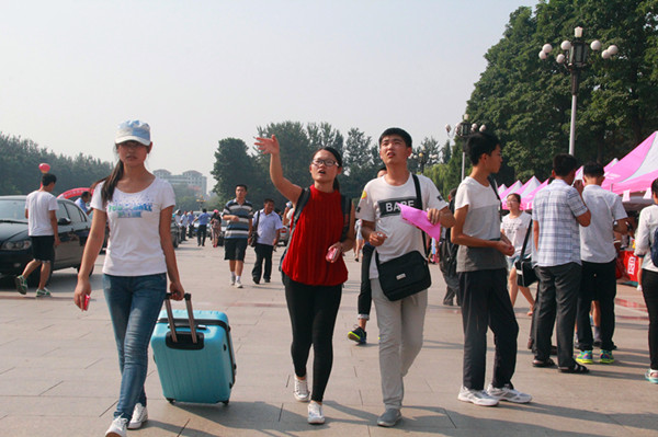 在学院迎新工作中,院团委副书记杨冬冬、辅导员田保玲以及学生会干部、2014级学生组成了庞大的志愿者队伍。报到现场,他们统一着装,认真地与新生家长沟通,对学生问及的报名、住宿、缴费、专业、军训等问题都一一作答;在陪伴新生通往宿舍的路上,志愿者为新生介绍学院的建筑布局和位置;宿舍里,整理床铺、清洁卫生、强调安全注意事项,志愿者们忙得不可开交。面对新生的感谢,他们微笑着回应:“不用客气,来到青农大,咱就是一家人。”
