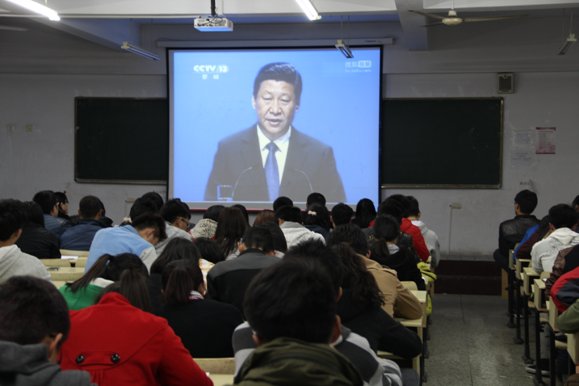 全体与会人员在观看演讲的过程中,认真做着记录,并对世界和平和中华文明进行着深深的思考,每一位同学都被习近平的演讲感染、感动,更为中国悠久的历史和灿烂文化骄傲、自豪,每一场演讲结束,都迎来同学们自觉发起的热烈掌声。演讲结束后,王海霞要求同学们要认真学习习近平的演讲内容,并结合自己对讲话的领悟及感想,会后写出心得体会。