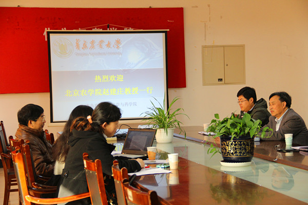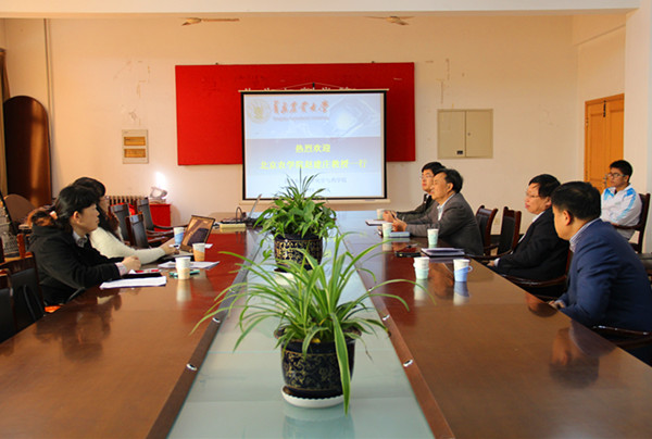 交流会上,曲院长与赵教授相互介绍各自学校的学院发展及专业建设情况,并对应用化学专业建设展开深入交流,互相学习经验。应用化学专业负责人徐鲁斌从实验实践教学体系、创新创业教育体系、理论及实践课程教学进度三方面详细介绍了该专业建设及2014版专业人才培养方案情况,重点讲解了学院“三平台三层次”实验实践教学课程体系,让来访教授对化学与药学院应化专业有更加深入的了解。会后,学院领导陪同北京农学院基础教学部人员参观实验室。