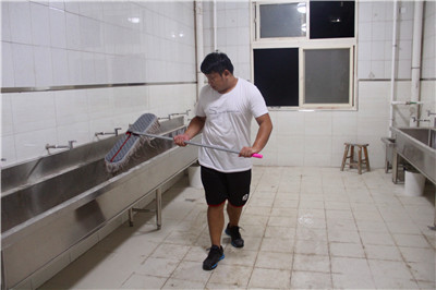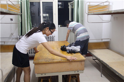 安全检查通过后,志愿者们自觉组成清理小组,分别对每间宿舍进行打扫。每个人手里都拿着事先准备好的工具,扫帚、拖把、抹布、垃圾袋齐上阵,志愿者们扫床板、洗风扇、擦桌子、玻璃、拖地,乐此不疲。经过辛勤的劳动,宿舍内一尘不染。