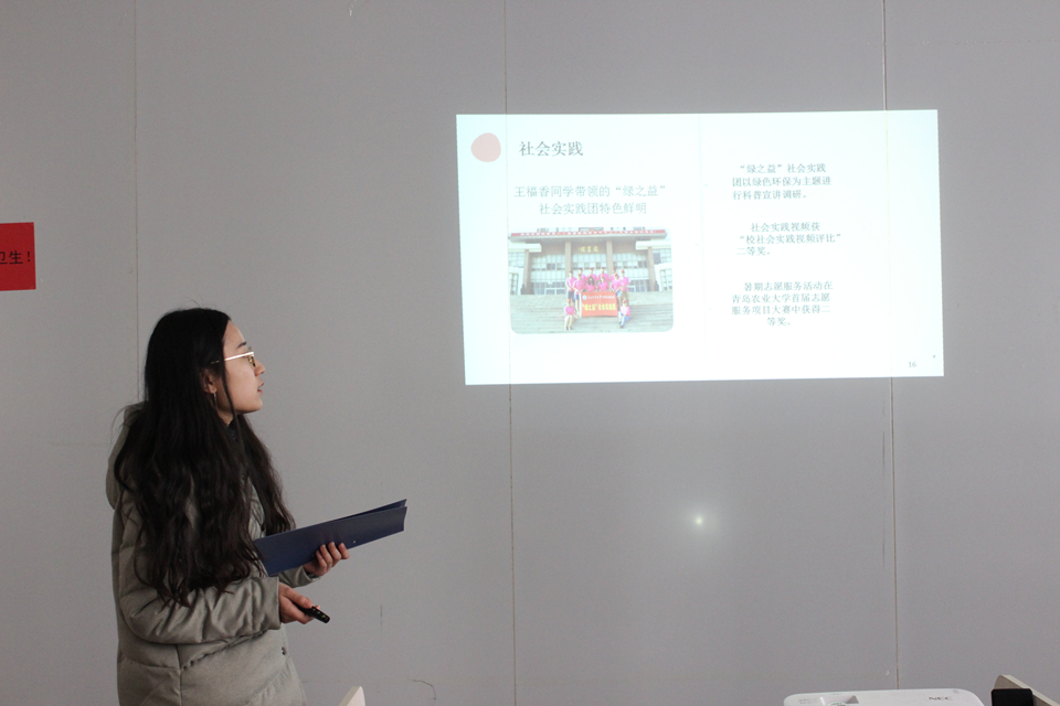 会议伊始,上一年度优秀班级和红旗团支部代表做汇报。汇报过程中各团支部各具特色,化学工程与工艺1401班团支书孙瑜着重强调班级学风建设,她表示以图表和数据的形式更能直观展示出班级发展状况,展现班级风貌。药学1402班班长王飞则强调班级特色建设,提倡以图片为载体,通过特色活动和社会实践体现班级核心价值观。随后,材料化学1401班团支书苏娜以自身班级汇报的PPT为模板,指出PPT应从思想建设、组织及制度建设、支部成长成材、新媒体建设、成果展示五方面展开制作,她说:“在日常班级建设时,我们应定期对班级问题进行理性分析,并针对班级发展趋势进行规划,找到班级生长点,在考评中突出特色。”