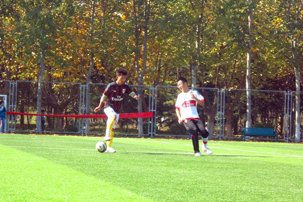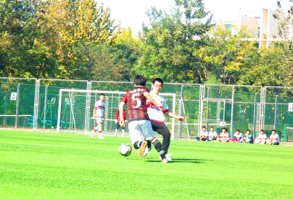 下半场比赛海洋学院展开有力进攻,将比分拉平。但化药足球队顶住压力,抓住机会,在包华的助攻下,11号球员刘家轩的射门干净漂亮,为化药足球队赢得了关键性的一分。