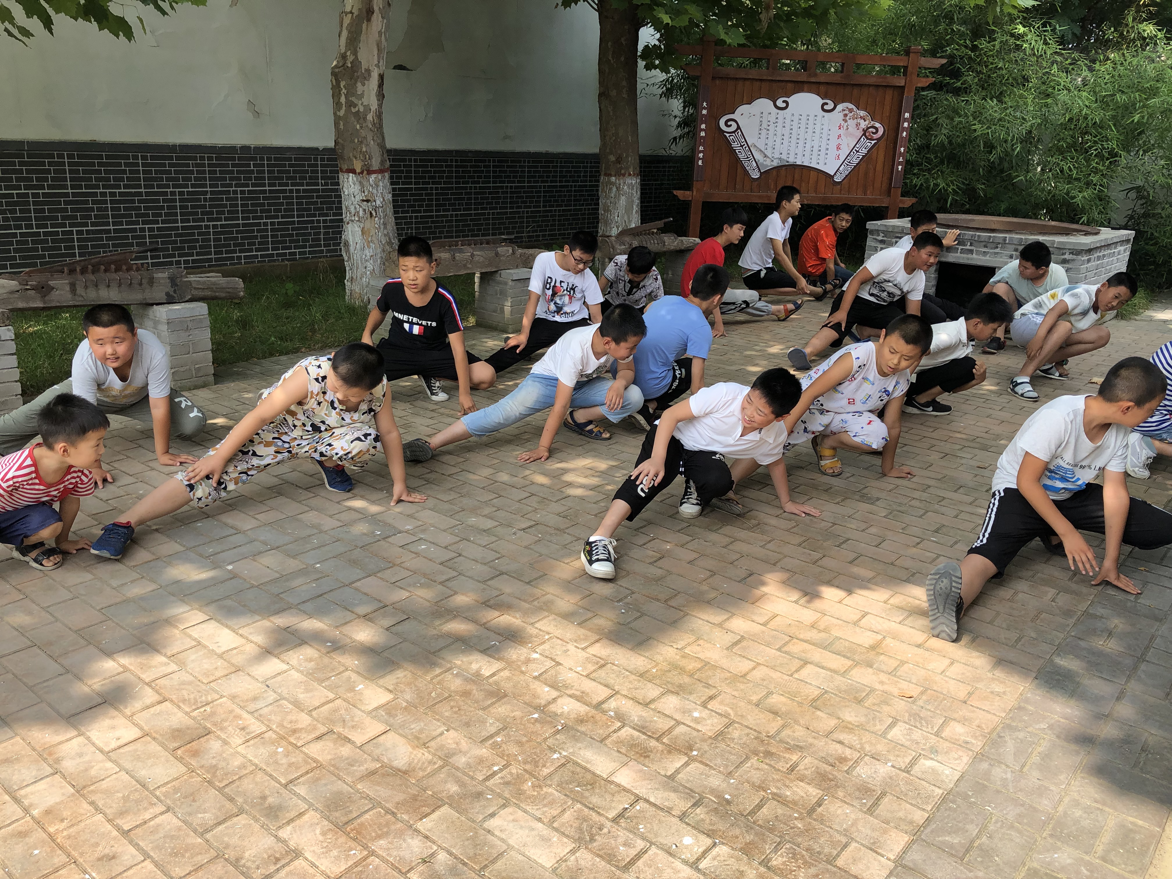 首先,老师为同学们讲述了武术的起源以及发展,随后提出教授学生们五步拳的提议,在观看完五步拳的动作解说视频之后,老师带领同学们去操场上开始练习五步拳。在武术课上,同学们个个斗志高昂,神采奕奕,“嘿”,“哈”,一声声昂扬向上的口号,整齐划一的步伐,铿锵有力的掌法,无一不展现着孩子们积极向上的精神态度。蹲马步时,老师们秉承着严谨认真的态度,为同学们一点一点地纠正错误步法,让孩子们把动作做到最好。