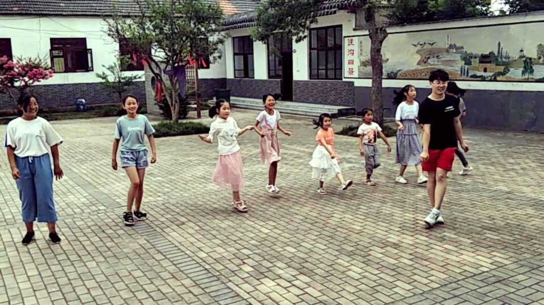 从武术的世界中走出后,队员们又带孩子们进入了歌舞的国度。一首《化身孤岛的鲸》开启了今天的艺术课程,同学们齐声歌唱,与队员们一起练习,一个个音符从教室传出,优美的音乐令人沉醉。完成此曲后,队员与孩子们一起合唱了一首《虫儿飞》,将所有人带回了那个鸟语虫鸣的夏夜,令人流连忘返。随后,舞蹈组的老师与孩子们一起去学习了舞蹈——《东西》,动作优雅美丽。时间很快就过去了,看到孩子们意犹未尽的表情,老师们跟孩子们约定明天继续舞蹈与音乐课程。
