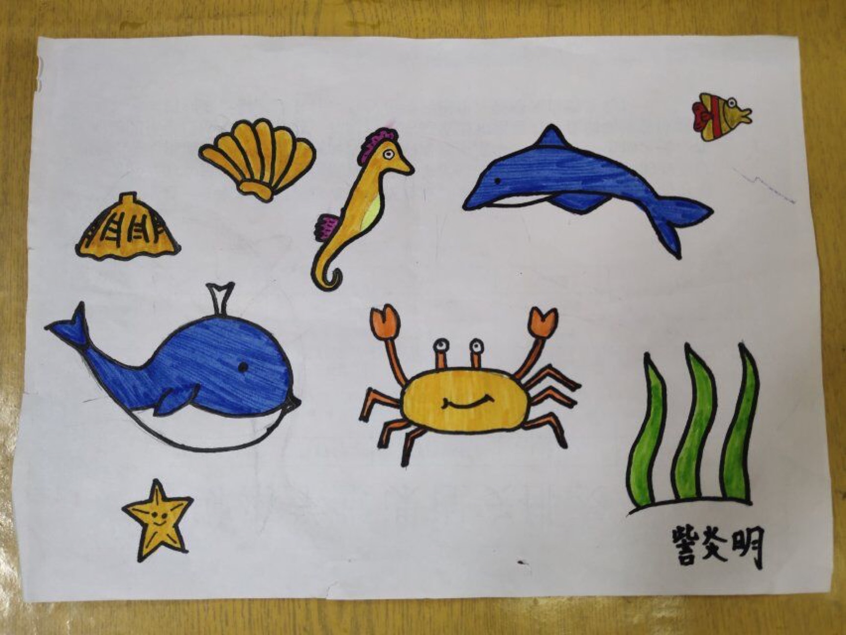 “画什么好呢?海底世界里面有好多小动物啊……”每个人都在认真地思考,想要把自己在海底见过的动物全部表现在画面上。每个人选择的画风也不同,有的选油画,有的选水墨画,有的选水彩画……多种多样,为课堂增添了一抹亮色。“嘟……”哨声响起,孩子们将自己的作品全部上交,由老师们进行批阅,为在结营活动上为家长展示。