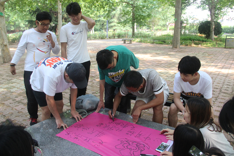 本次团体辅导按支教分队进行分组,青岛支教队、临沂支教队、德州陵城支教队、德州夏津支教队与菏泽支教队5个分队在牡丹园集合,进行了团体辅导。