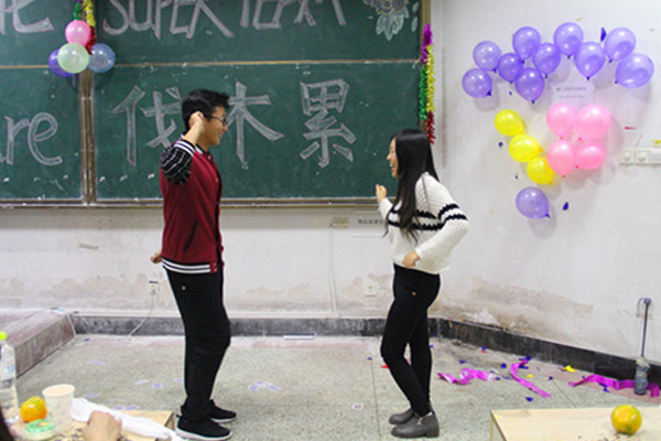 联谊晚会开始前,“置办教室装扮物、购买水果零食、排练节目、设计游戏环节,等琐事很多,班委们就各个班级负责的活动内容都做好了事先安排,每个同学都在用心准备,联谊前的和谐氛围让我感觉我们就是一家人。”15级应化班长包罗说道。 “青春应化,super team,we are 伐木累” 在他们的装扮的教室黑板上写着他们的感受。