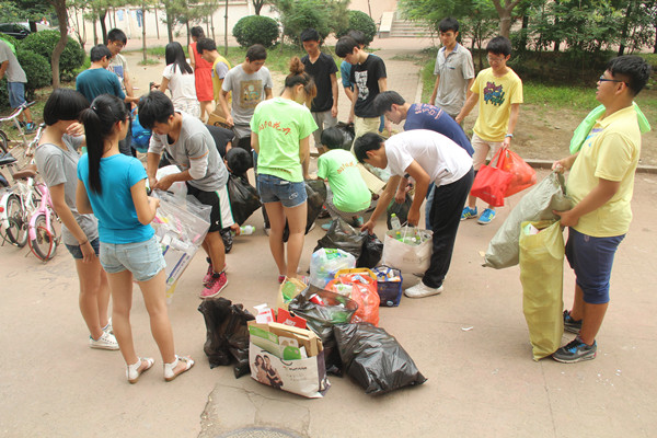 本次爱心捐助活动在学院大四同学间展开,其余各年级的数十名志愿者参与其中。,活卫生部工作人员与志愿者进入大四毕业生同学宿舍,大四同学们态度热心,纷纷积极募捐,捐赠物品主要包括:排球、羽毛球拍等体育用品,课堂笔记、课外书等资料书籍,蚊帐、衣物等日常用品,旧书本、空瓶等回收物品。