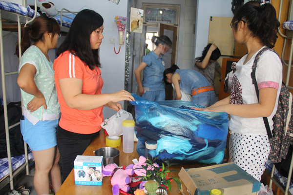 6月15日,化学与药学院生活卫生部联合“向阳花开”支教队志愿者在学生公寓东苑12号楼、西苑2号楼开展“向阳花开、爱心捐助”活动。