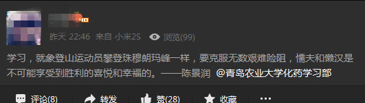 学院学生会新闻中心也去实验室采访大四毕业班的同学,听听他们四年的感触以及未来的打算,从他们那学习一些经验,采访的最后,毕业生给学弟学妹送上了自己的青春寄语:大学四年, 经历了青春的酸,甜,苦,辣,你才会成长为一个真正有意义的人。青春短暂,会从你手边轻轻流走,把握好青春意味着充实的人生就在不远的前方等待着你。