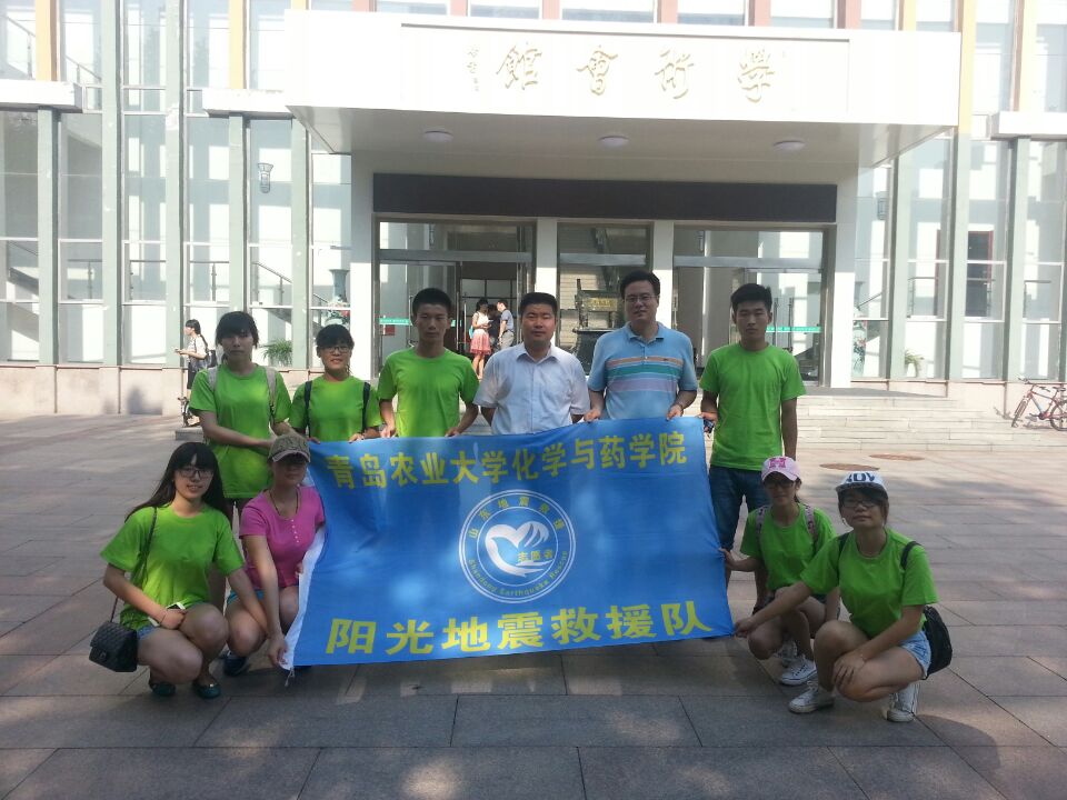 7月16日,化学与药学院阳光地震志愿者暑期实践团在主楼前举行出征仪式并展开首次应急知识宣讲活动。校团委书记初磊、校团委副书记王峰及实践团队的所有成员参加出征仪式并合影留念。