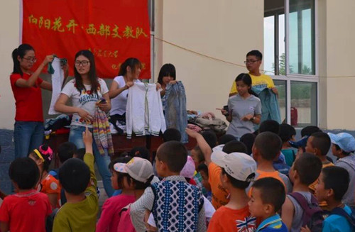 爱心礼物赠送会。进行了不到20分钟,所有的衣物全部被分给了孩子们,仪式结束后,孩子们热情洋溢的笑容让支教队员们也倍感欣慰。