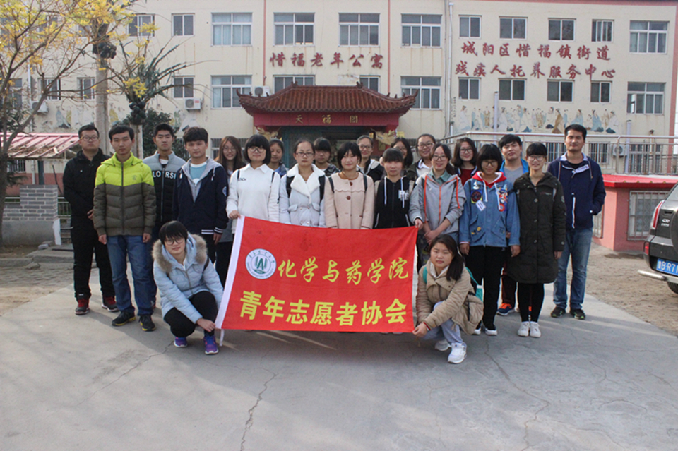 11月12日,化学与药学院青年志愿者协会于青岛市城阳区惜福镇老年公寓开展“尊老敬老,送温送暖”活动。此次活动由化药青协主办,会长张瑞帆和基地管理部部长史志恒带领16名学生队员参与。