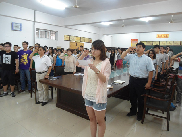 6月28日,化学与药学院在学院会议室举行新党员入党宣誓大会。学院党委书记王智,党委副书记史雪辉、团委书记王海霞及学院全体学生党员参加大会,会议由王海霞主持。