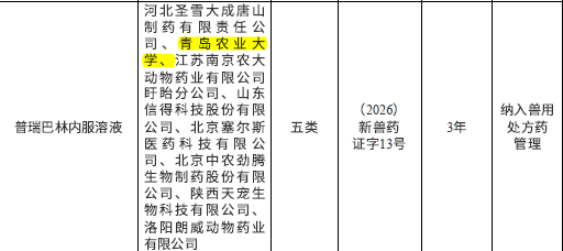 此次获批的三款新兽药分别为:二类新兽药马罗匹坦及马罗匹坦注射液((2026)新兽药证字33号、34号)、三类新兽药溴氯海因片((2026)新兽药证字35号)、五类新兽药普瑞巴林口服液((2026)新兽药证字13号)。三款新兽药在宠物高效止吐、抗应激、水产养殖健康防护等领域应用广泛,成功填补国内相关兽药领域用药空白,具备突出的临床应用价值与产业推广价值。