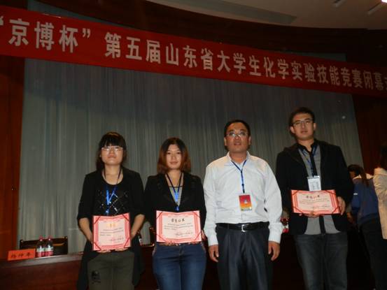 10月14日,历时2天的“京博杯”第五届山东省大学生化学实验技能竞赛在滨州落下帷幕。青岛农业大学化学与药学院派出由王修中老师任领队兼指导教师,由唐政、刘欣琪和张文文组成的团队参赛,取得了优异成绩,其中唐政获得了一等奖,刘欣琪、张文文分别获得了三等奖。