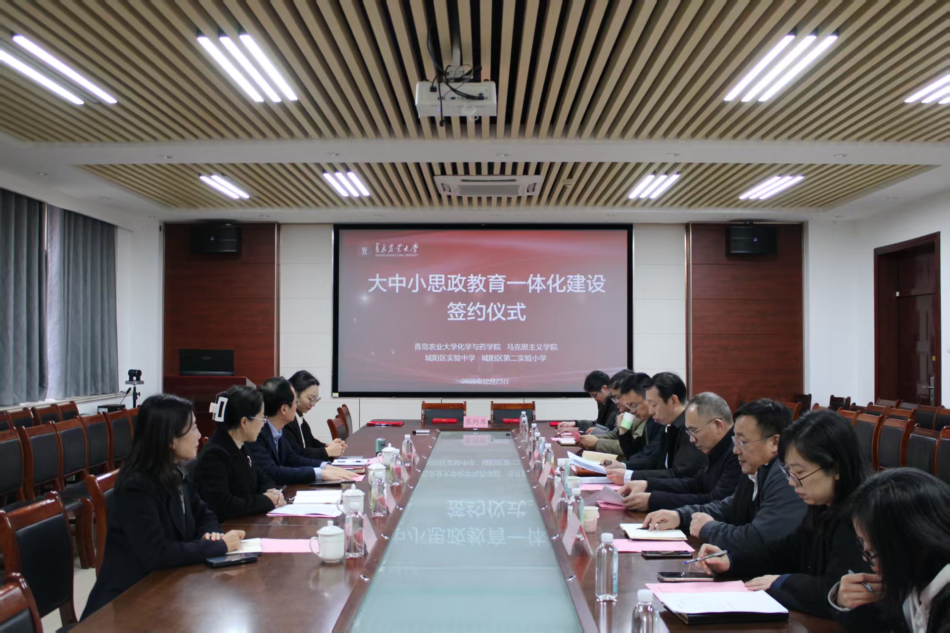 为深入贯彻落实习近平总书记在全国教育大会上的重要讲话精神,聚焦落实新时代立德树人工程,12月23日下午,大中小学思政教育一体化建设签约仪式在青岛农业大学化学与药学院会议室顺利举行。此次签约标志着学校与城阳区实验中学、城阳区第二实验小学在思政教育协同育人方面开启机制化、常态化合作新篇章。