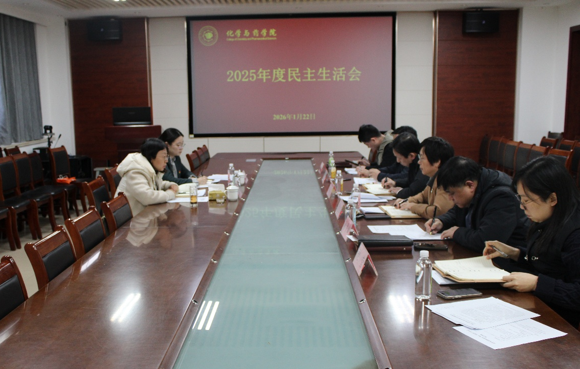 1月22日,青岛农业大学化学与药学院于化学楼会议室召开2025年度民主生活会。校党委委员、副校长张玉梅出席会议并讲话,学院党委书记由源清主持会议,学院党委班子成员参会。