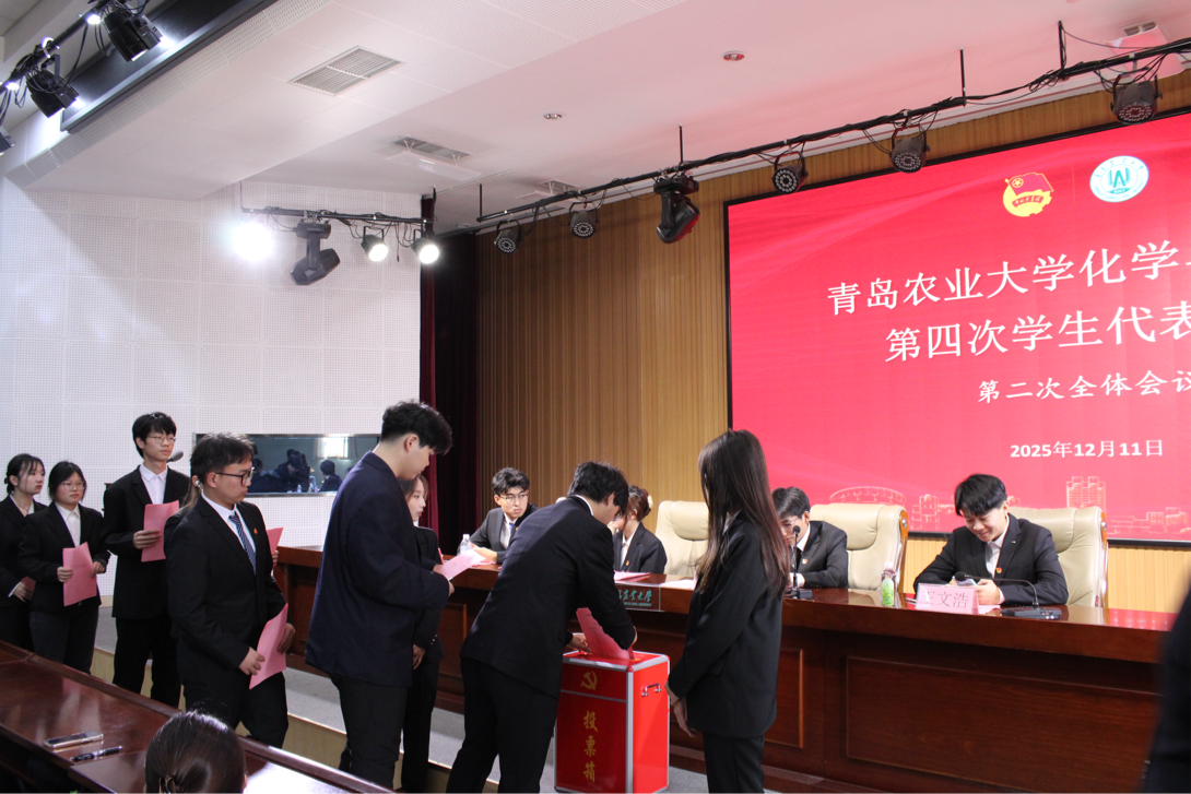 青岛农业大学化学与药学院第四次学生代表大会在高昂的《光荣啊,中国共青团》中闭幕。会后,学院召开青岛农业大学化学与药学院第四次学生代表大会常任代表会议第一次全体会议。
