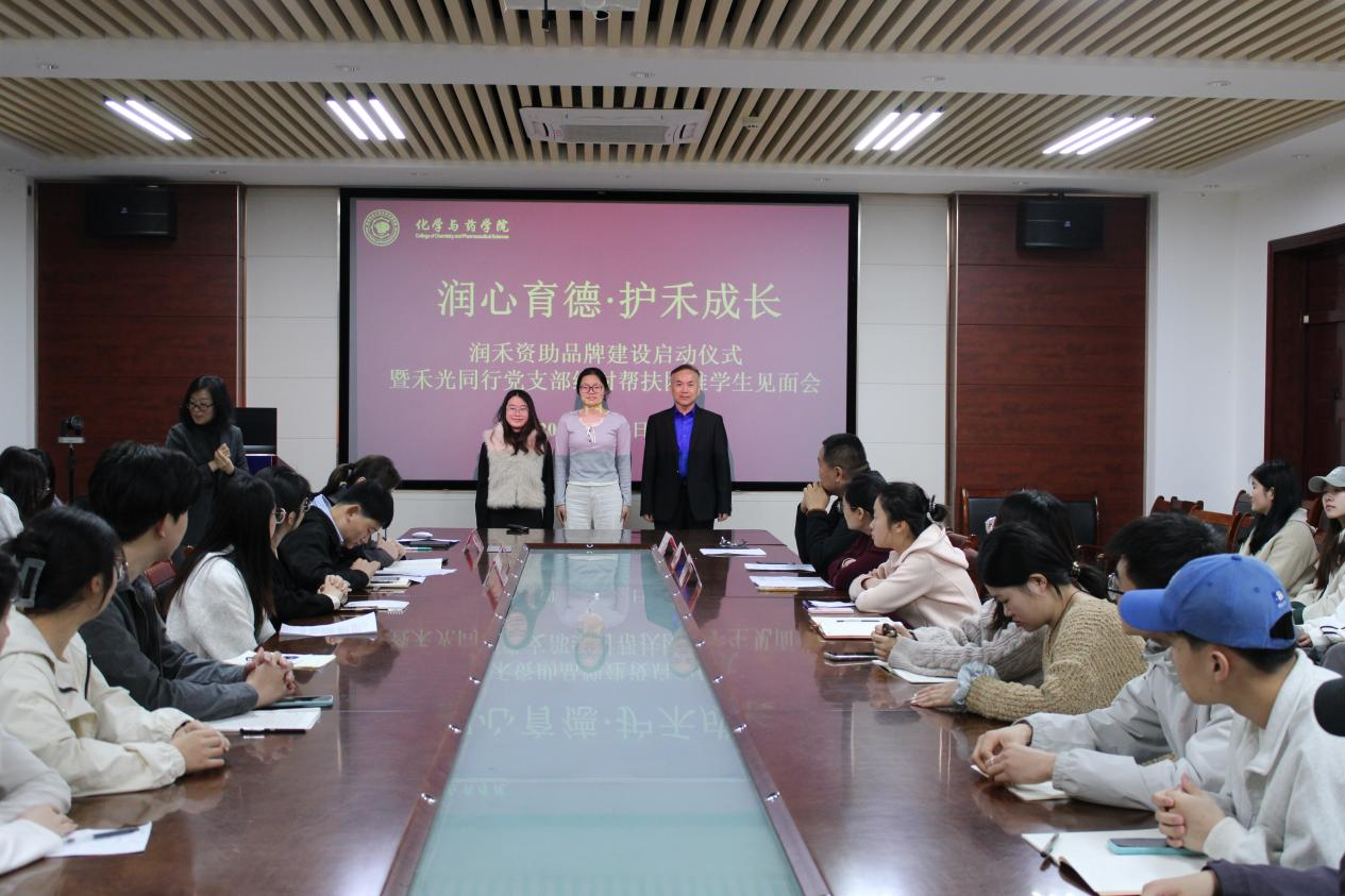 为进一步深化资助育人工作,构建全方位、精准化帮扶体系,4月2日,化学与药学院于化学楼会议室召开“润禾”资助品牌建设启动仪式暨禾光同行党支部结对帮扶经济困难学生见面会。会议由学院党委副书记、副院长刘兴华主持,副院长徐鲁斌、教工党支部教师代表、学生骨干党员及经济困难学生代表参加。