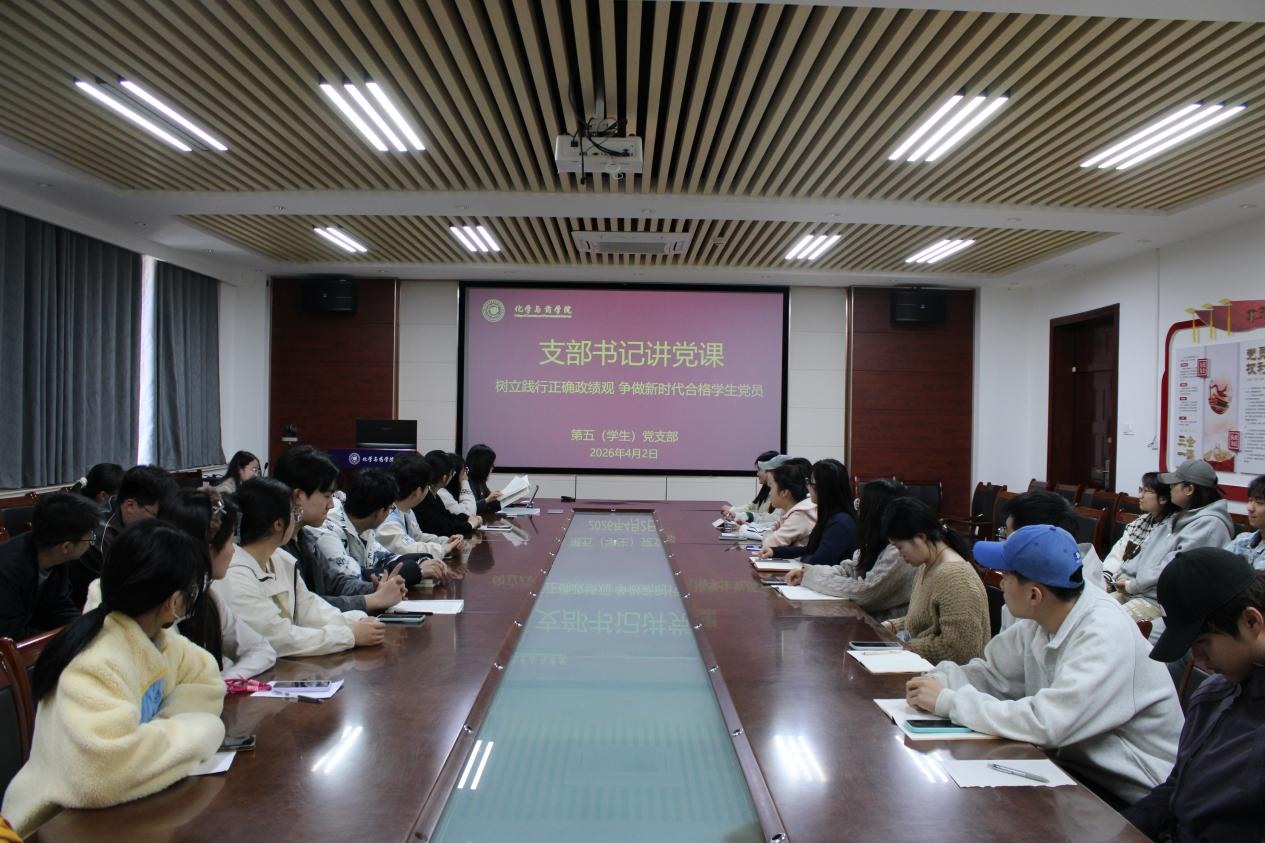 4月2日,化学与药学院第五(学生)党支部组织开展“树立和践行正确政绩观,争做新时代合格学生党员”专题党课活动。党支部书记黄煜主持,支部全体党员参加学习。
