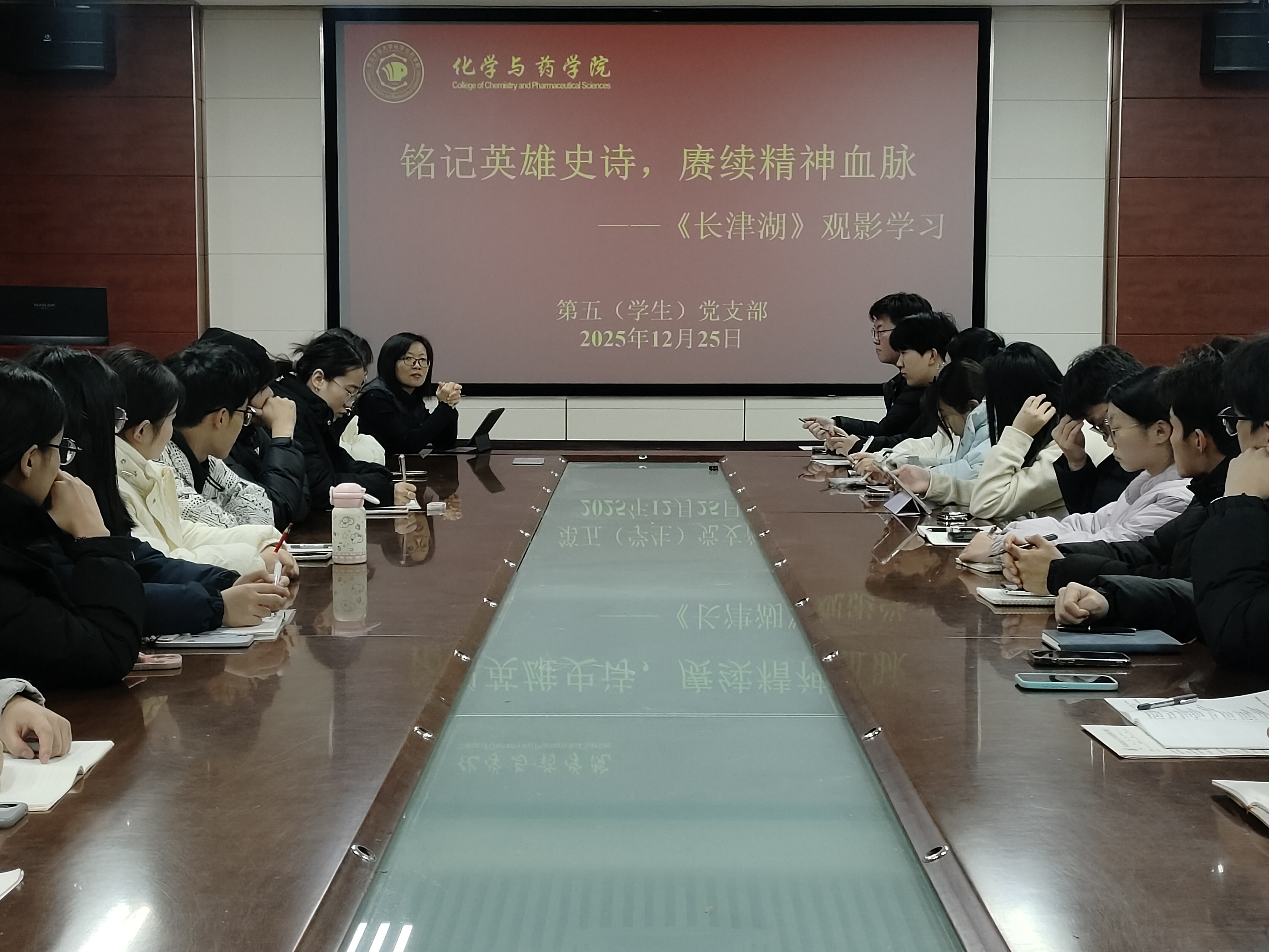 为深入弘扬爱国主义精神,传承红色基因,12月25日,化学与药学院第五(学生)党支部于化学楼207会议室开展了“铭记英雄史诗,赓续精神血脉”主题观影活动,会议由党支部书记黄海红主持,党支部全体党员参加学习。